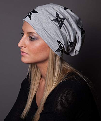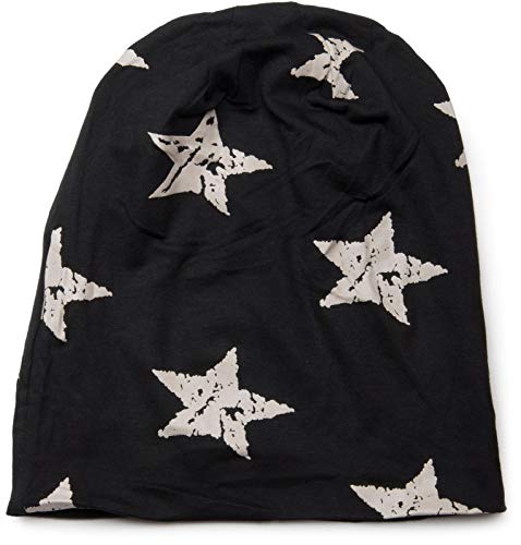 StyleBREAKER Cuffia Beanie con Stampa di Stelle dal Look Vintage Destroyed, Unisex 04024041, Colore:Nero