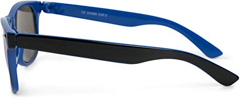 StyleBREAKER Occhiali da sole Nerd Kids Nerd con montatura in plastica e lenti in policarbonato, design classico retrò 09020056, colore:Montatura Nero-Blu/Vetro Blu munito di specchi