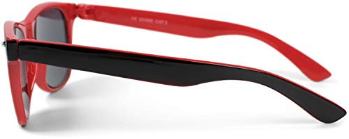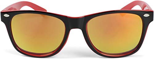 StyleBREAKER Occhiali da sole Nerd Kids Nerd con montatura in plastica e lenti in policarbonato, design classico retrò 09020056, colore:Montatura Nero-Rosso/Vetro Arancione-Rosso munito di specchi