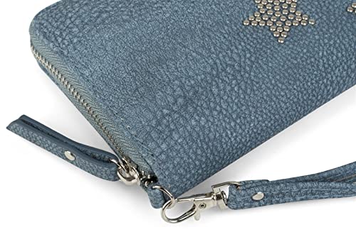StyleBREAKER portamonete con borchie a stella, chiusura con cerniera a 360 gradi, borsello portamonete, donna 02040043, colore:Jeans blu