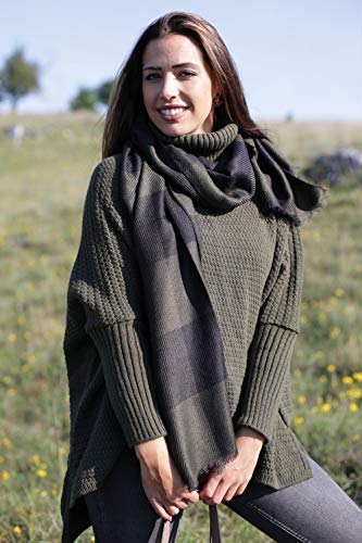StyleBREAKER Pullover a Maglia Oversize da Donna con Perline e Maniche Lunghe, Collo Alto ripiegato, Poncho, Taglia Unica 08010065, Colore:Blu Scuro
