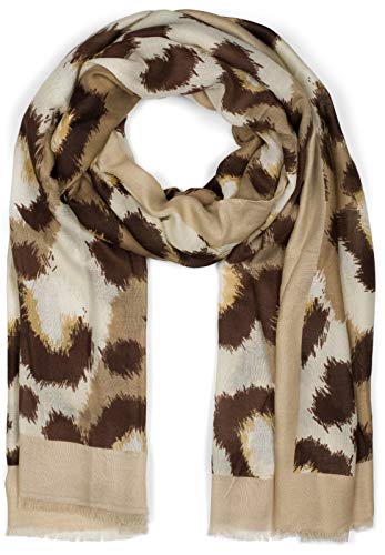 StyleBREAKER Sciarpa da donna con stampa Leo astratta oversize e frange corte, sciarpa leggera, stola 01016207, colore:Beige-Marrone