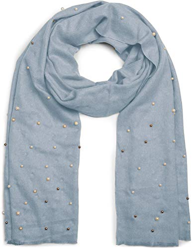 StyleBREAKER sciarpa nobile morbida con applicazione di perle, sciarpa invernale, stola, foulard, sciarpa, signore 01017074, colore:Blu chiaro