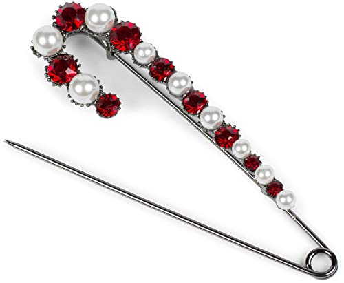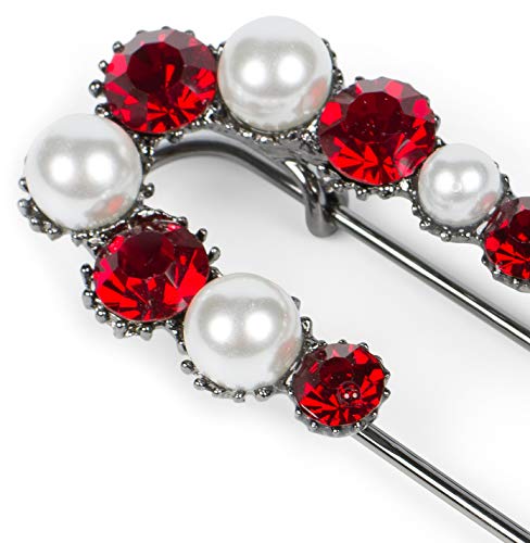 StyleBREAKER Spillo da donna XXL con perle e strass incastonati per poncho, sciarpe, spilla da balia 05050109 e base metal, colore: Antracite/bordeaux/rosso, cod. 05050109