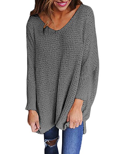 StyleDome Donna Canotta Autunno Camicetta Maglietta Manica Lunga Blusa Sportiva Collo V Ufficio Tops Grigio M