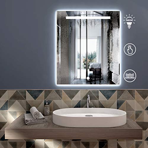 Styleglass Specchio bagno con led MOGAN 60x70 cm - Specchio da parete con luci LED - Specchio bagno led con kit di fissaggio - Specchio da parete moderno