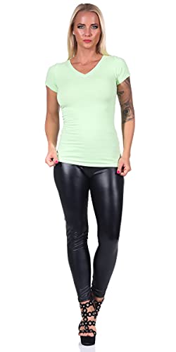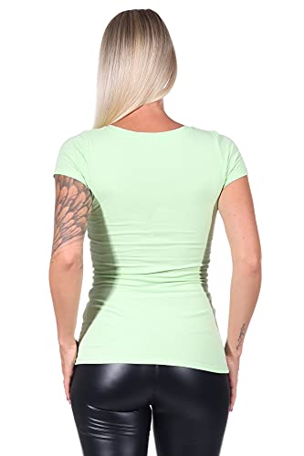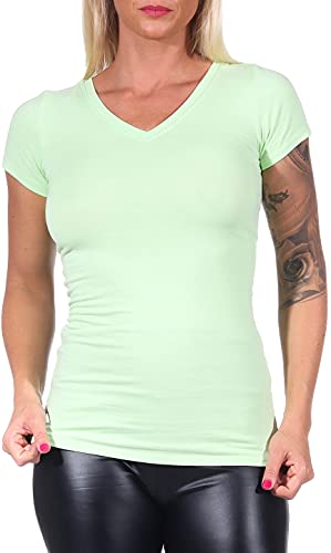 StyleLightOne Maglietta basic da donna, a maniche lunghe, elasticizzata, scollo a V, slim fit (36-42), Verde 98 (scollo a V), 44/46 IT