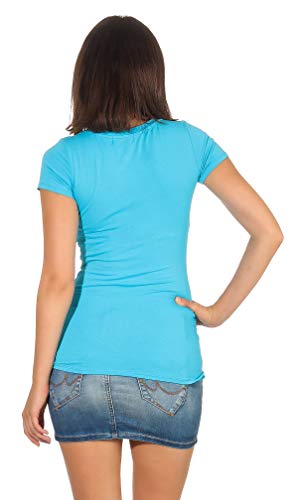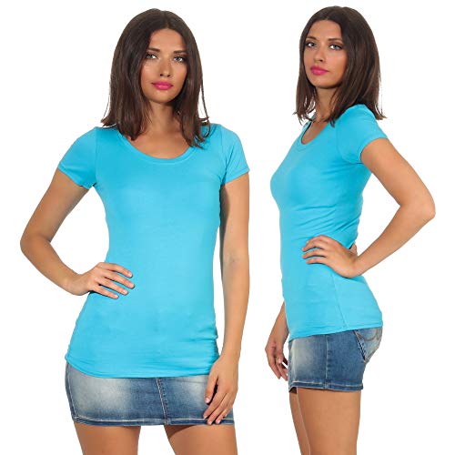 StyleLightOne Maglietta basic da donna, a maniche lunghe, elasticizzata, scollo a V, slim fit (36-42), Azzurro (collo rotondo)., 46-48