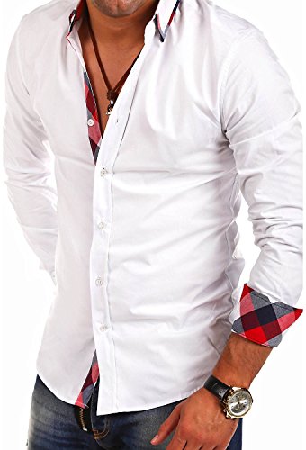 MT Styles camicia Slim Fit contrasto a manica lunga BH-303 [bianco, M]