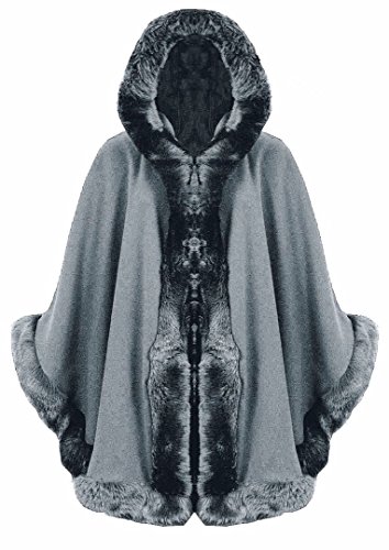 FK Styles, cardigan da donna in stile poncho, con maniche a ¾ e cappuccio con bordo in finta pelliccia, ispirato a quello delle celebrità Grey Taglia unica