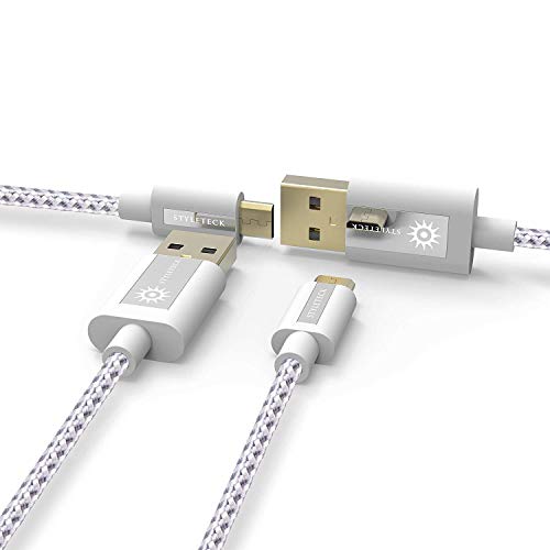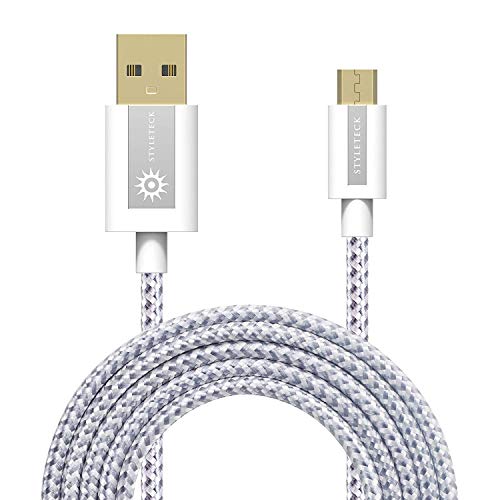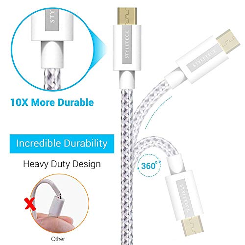 STYLETECK Micro USB Cable 30CM, High Speed 2.0 Nylon Braided Android Charger Cord, Fast Charge Data Sync Lead Compatible with Samsung Galaxy S7/ S6 Edge, OnePlus, Nexus, PS4, Xbox and More - Silver