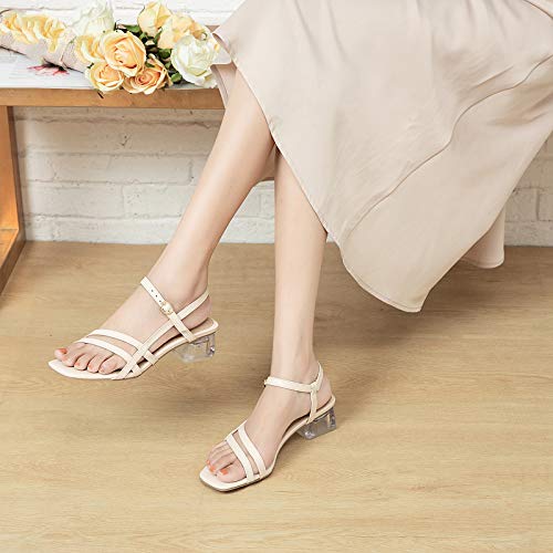 StyliShoes Sandali da donna con tacco quadrato trasparente e punta aperta, Beige (beige.), 32 EU