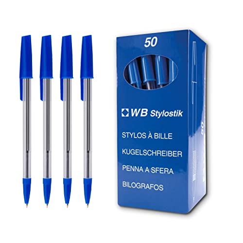 WB Stylostik - Penna a sfera a punta media, confezione da 150 pezzi, 3 x 50 pezzi, con impugnatura comoda, colore: Blu