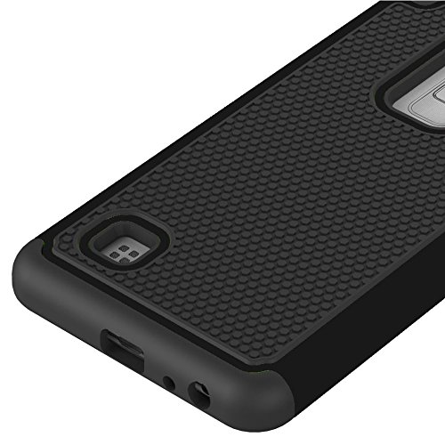 LG Stylus 2 LS775 Custodia, LG G Stylo 2 Cover, Firefish [Pattern Calcio] 2 in 1 Morbido Silicone + PC Hybrid Dual Layer Armatura Caso, [Assorbimento-Urto] Della Calotta di Protezione per LG Stylus 2/LG G Stylo 2/LG LS775 -Nero