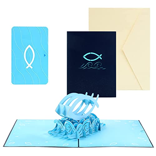 Set di biglietti per comunione 3D: il biglietto eucaristico 3D è dotato di una busta per biglietti di auguri e contiene anche un mini biglietto blu su cui scrivere le vostre benedizioni.