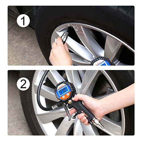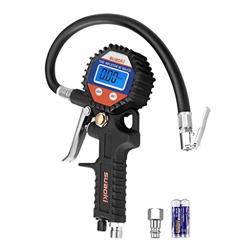Suaoki 150PSI Manometro Digitale Pressione Pneumatici con Tubetto e Innesto Connettore, Tutto in Uno, Precisione ±0,5PSI, Batteria Inclusa, per Auto Moto Camion Bici