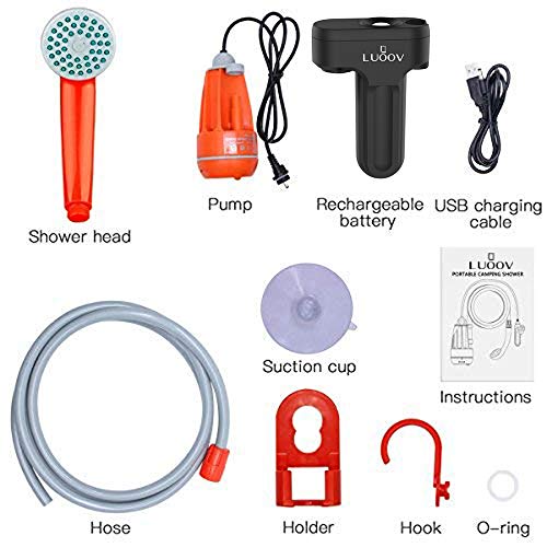 DOCCIA CAMPEGGIO COMPATTA: questo kit contiene di una pompa potente di doccia, una soffione doccia delicata, una ventosa, un gancio-S e un tubetto 1,8m, con la batteria ricaricabile. È molto facile usarlo e un prodotto durevole