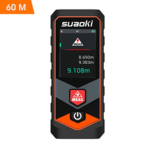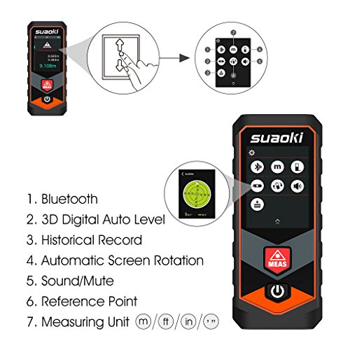 Suaoki P7 Misuratore Laser Blutooth Telemetro Distanziometro Precisione +/- 2mm con Touchscreen per Misurare Volume dell'Area Pitagorica Distanza di 2 Punti Arbitrari, Batteria inclusa (60m)