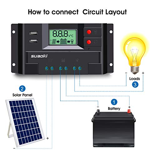 SUAOKI 20A Regolatore di Carica Automatico 12V/24V PWM Controller Caricatore Solare Intelligente, Multi Protezioni con Doppia 5V USB, LCD Schermo