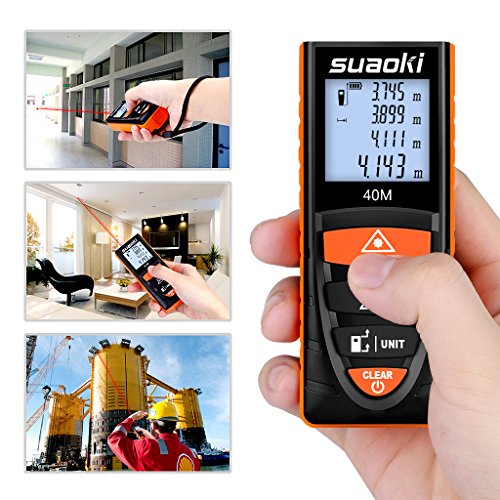 Suaoki D8 telemetro laser digitale, schermo 4 pollici LCD retro illuminato, misura unica distanza, misura continua, modalità Pitagora, ecc, arancione 0.75W, 1.50V