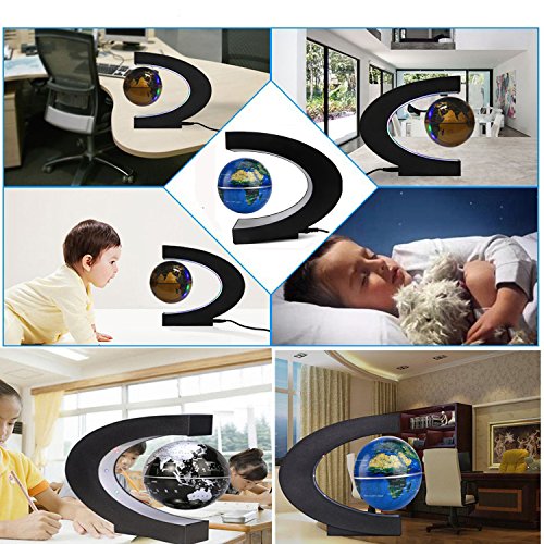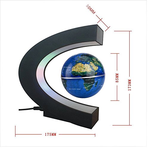 Globe galleggiante: Funzionato da un sistema magnetico controllato elettronicamente.Floating e rotazione in midair.A buona decorazione da scrivania (NOTA: Dimensione Globe: 3 '' C Formato (H * W): 6,81 "x 7,09" .Le luci del globo brillare solo sul retro del blob.)