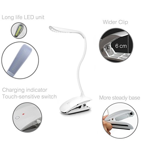 SUAVER Lampade con pinza, Lampada da Scrivania a Clip LED Lampada da Tavolo Tocco 3 livelli di luminosità Lampada da Lettura,Lampada Flessibile USB Ricaricabile luci di notte per la lettura (Giallo)