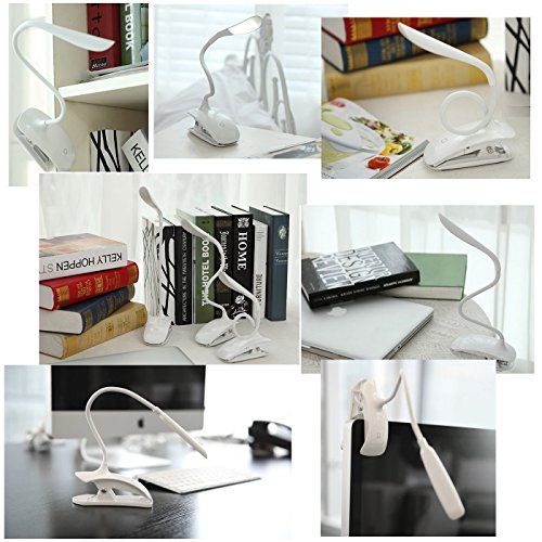 SUAVER Lampade con pinza, Lampada da Scrivania a Clip LED Lampada da Tavolo Tocco 3 livelli di luminosità Lampada da Lettura,Lampada Flessibile USB Ricaricabile luci di notte per la lettura (Bianca)