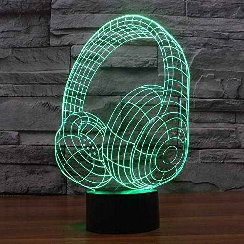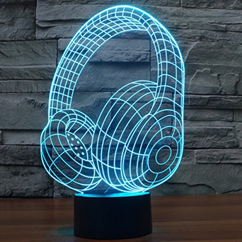 SUAVER 3D Luce Notturna, 3D Optical Illusion 7 Colori Cambiano Tocco Lampada da Tavolo Decorazione Luci per Camera da Letto della Stanza di Bambini (cuffia)