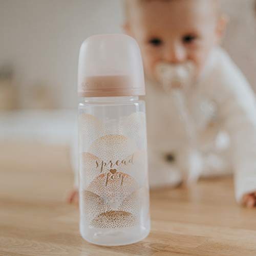 Questo biberon presenta la nuova bottiglia Suavinex a forma dritta che offre una presa più comoda per il bambino.