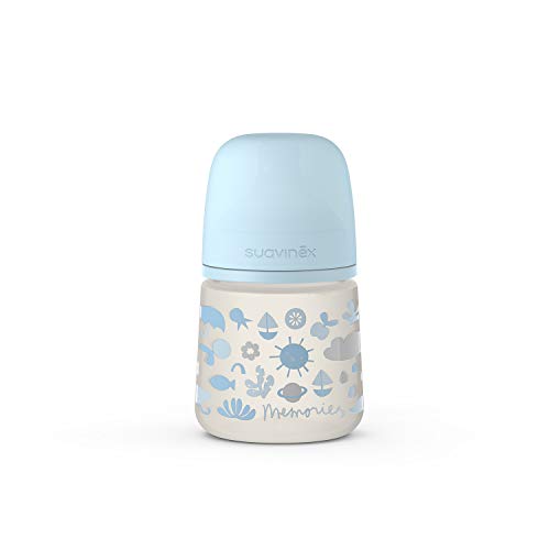 Suavinex Biberon con Tettarella Simmetrica SX Pro in Silicone a Flusso Lento, per Bambini di Età Superiore a 0 Mesi, 150 ml, blu