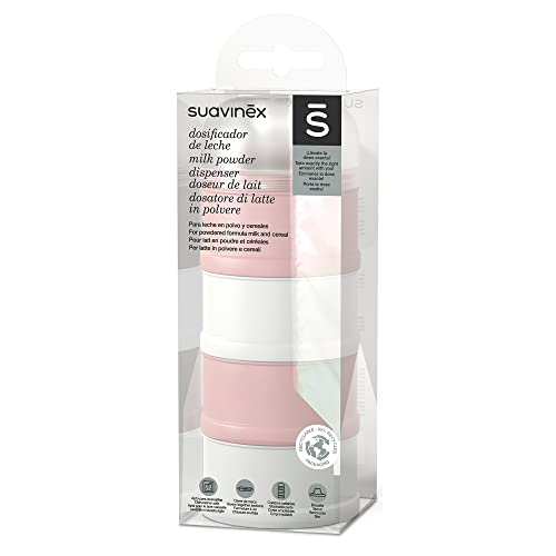 Suavinex Dosatore Latte in Polvere e Cereali. Con 4 scomparti, beccuccio e chiusura a vite. Lavabile in lavastoviglie. Bonhomia, Colore Rosa