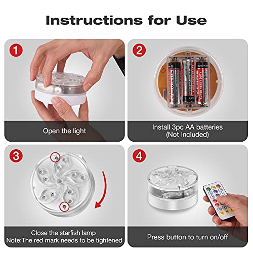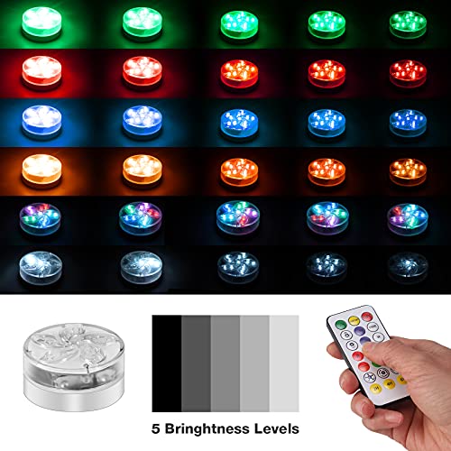 Luci subacquee, luci a LED con telecomando RF, IP68, impermeabili per laghetto, illuminazione per laghetto con magnete e ventosa, illuminazione per fontana e acquario, 4 luci a 2 telecomandi