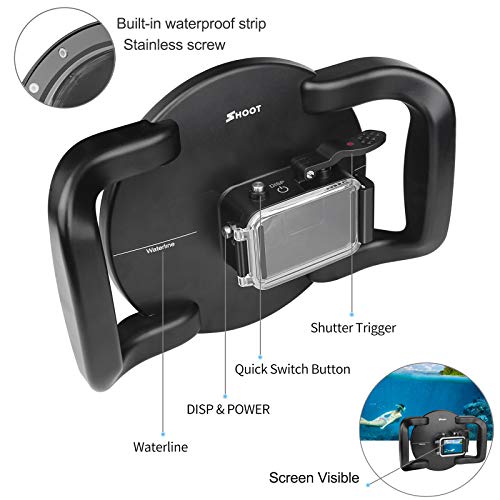 ⭐ Design con Impugnatura Doppia: la barra a due maniglie tiene le mani lontane dalla fotocamera e consente di acquisire video più stabili. Ideale per immersioni, snorkeling, surf e altre attività subacquee