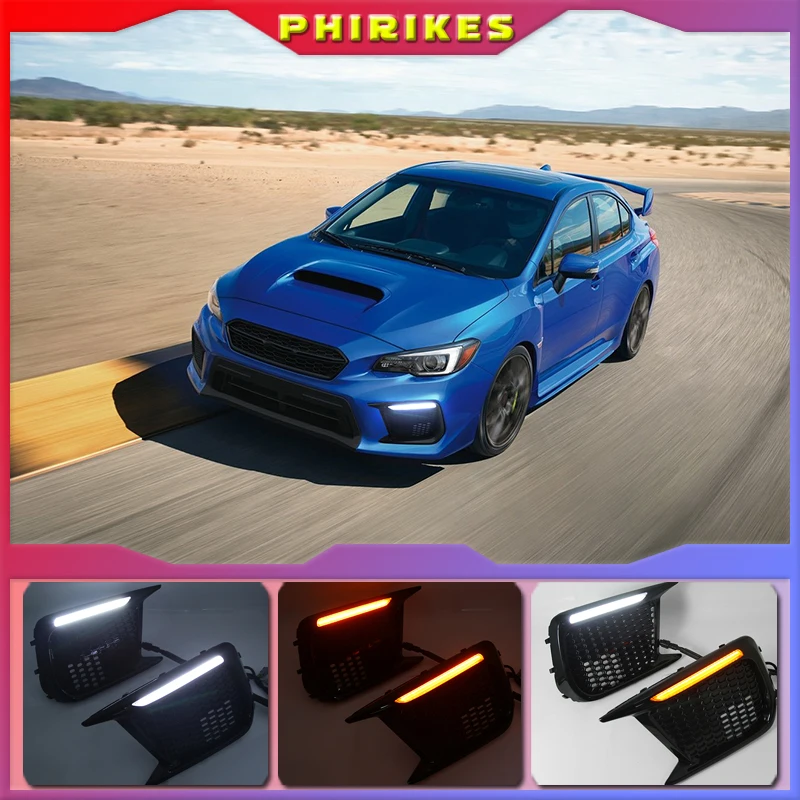For Subaru WRX STI 2018-2020 White LED DRL Daytime Running Light Amber Dynamic Sequential Turn Signal Bezels Fog Lamp