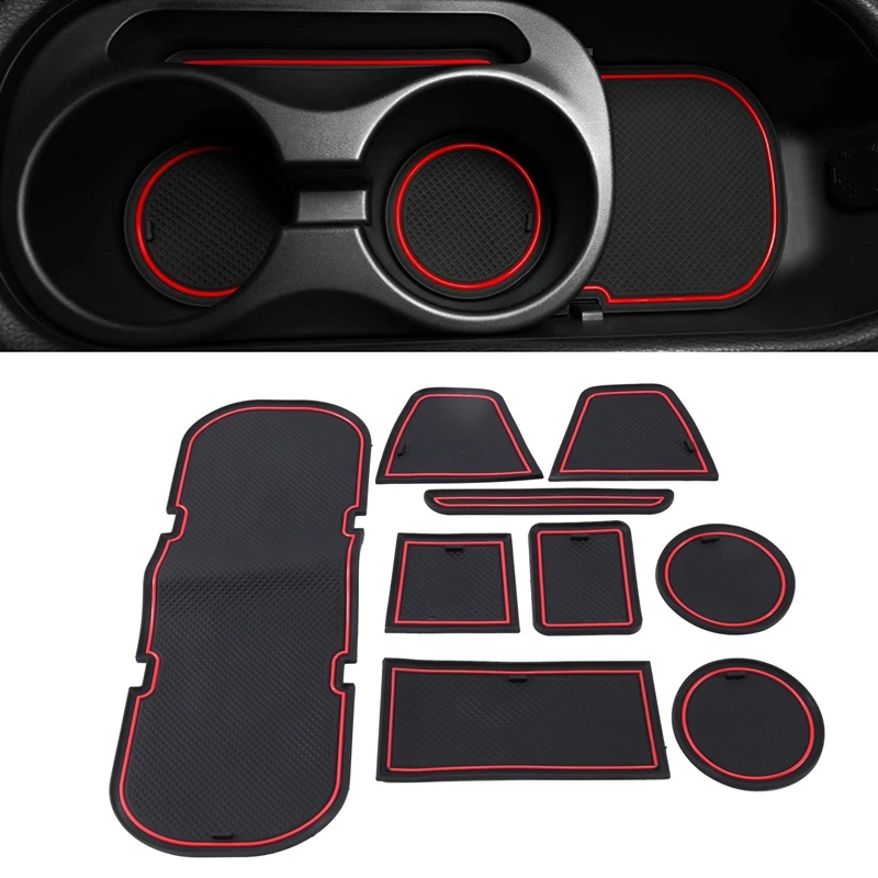 For Subaru BRZ Toyota 86 and Scion FR-S 2012-2020 Premium Cup Holder and Center Console Inserts 9-Pc Set (Red Trim)