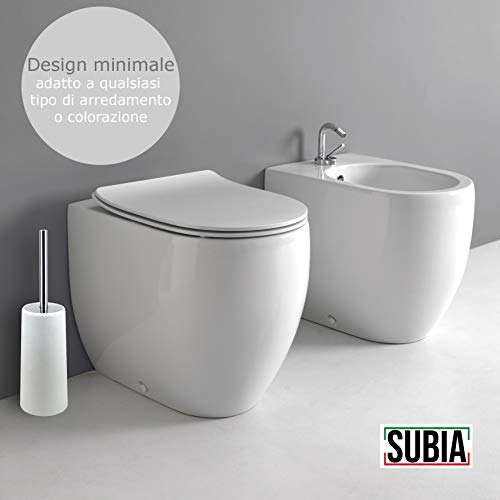 SUBIA Scopino e Porta Scopino per WC, Set da 2 Pezzi - Accessori per il Bagno in Acciaio Inox, Design Moderno e Minimal - Porta Scovolino Igienico e Antibatterico con Setole Antigraffio e Paraschizzi