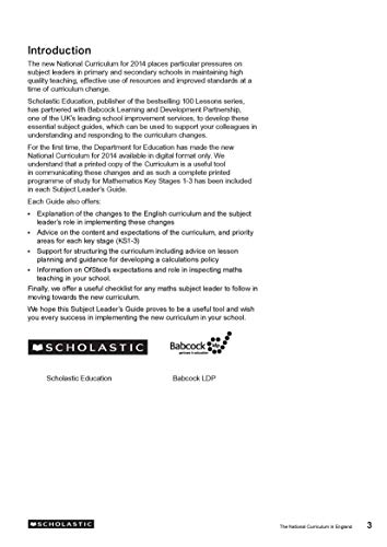 Subject Leader Guide for Maths- Key Stage 1 -3