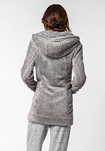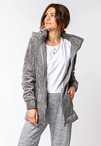SUBLEVEL, cappotto, da donna, in pile Teddy. Soffice, lungo, in pile, con collo alto middle-grey1 M