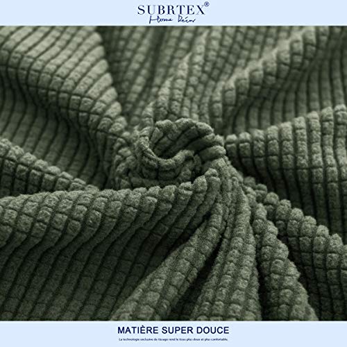 Subrtex - Copridivano estensibile, con braccioli, elasticizzato, per divano, Tessuto, Verde oliva, 3 posti