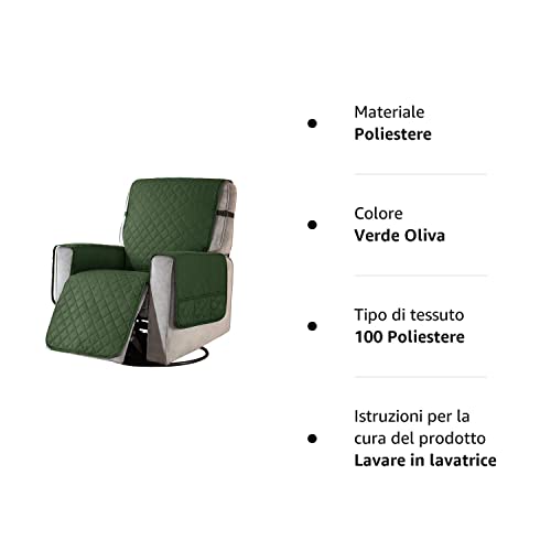 Subrtex Copripoltrona Relax Reclinabile, Copri Poltrona Relax Reclinabile 1 Posto Lavabili per Sedia Reclinabile con Cinghia Elastica Regolabile Casa(Piccola, Verde Oliva), EUSBTSR12