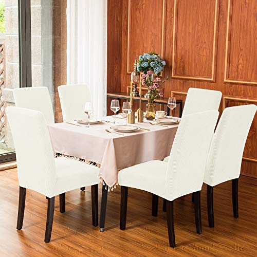 Subrtex- Coprisedia elasticizzati in spandex, per sala da pranzo, lavabile in lavatrice, con schienale alto rimovibile., Tessuto, bianco, 2 pezzi
