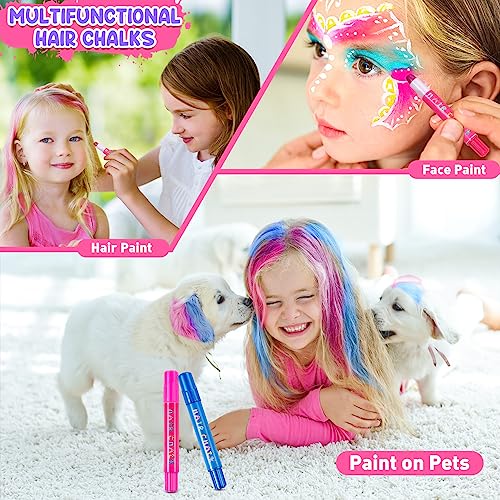 【Bastone per Capelli Unico】 Il colori trucco viso bambini contiene due spazzole per capelli, la spazzola per capelli blu e la spazzola per capelli rosa aggiungono un colore abbagliante ai capelli in modo rapido e semplice. Contiene inoltre particelle perlescenti in grado di donare ai capelli un effetto visivo lucido. Puoi anche usarlo sui peli del tuo simpatico cane. Permette a te e al tuo bambino di divertirsi