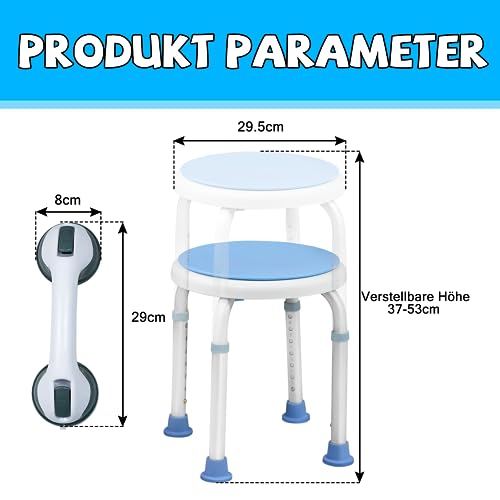 Design girevole: il design girevole a 360° dello sgabello da doccia offre maggiore comfort e flessibilità quando si fa una doccia seduto sullo sgabello da doccia. Adatto a bambini, anziani, malati, disabili fisici o bisognosi di cure.