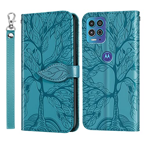 Succtopy Custodia Compatibile con Motorola Moto G100, PU Pelle Portafoglio Supporto Magnetica Flip Folio Caso Silicone Cover per Motorola Moto G100 libro,Albero Blu