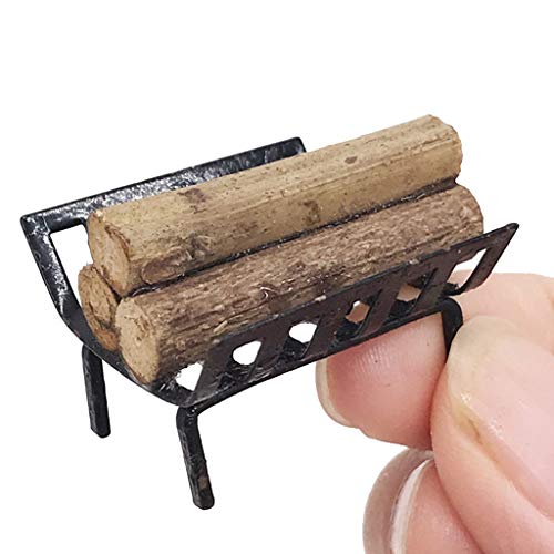 SUCHUANGUANG 1/12 Mobili in Miniatura per casa delle Bambole Scaffale in Metallo con Legna da ardere per caminetto Collezione di Decorazioni per Soggiorno Legno, Scaffale per casa delle Bambole in