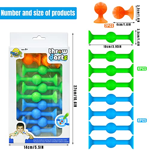 【Set di giocattoli a ventosa】- Questo è un giocattolo interattivo super caldo per famiglie o squadre nel 2023! 4 * freccette a ventosa blu, 4 freccette da gioco pop verdi, 2 marcatori di finitura arancione. Viene fornito con una bella confezione regalo.