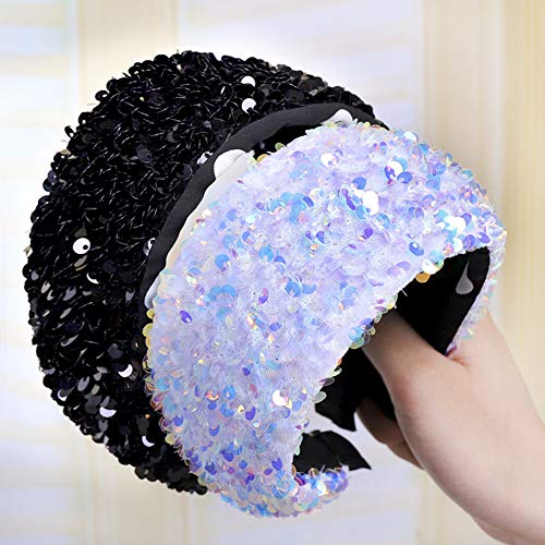 Sudalv1971 Regalo Accessorio Accessori Copricapo Fascia Per Capelli Larghi In Velluto Con Paillettes Bling Nero