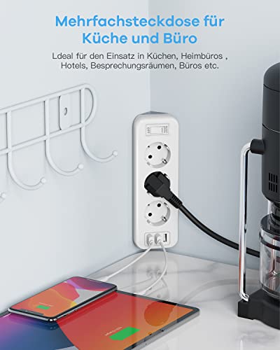 Multipresa con USB: 3 prese con 3 porte USB (5 V 2,4 A Max). È possibile caricare 6 dispositivi contemporaneamente. Come ad esempio smartphone, tablet, utensili da cucina, ecc.
