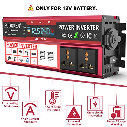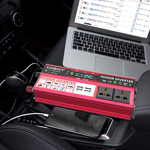 SUDOKEJI Inverter di potenza da 12 V a 240 V AC 1500 W con display a LED Convertitore da auto con 2 prese universali AC e 4 porte USB da 3,1 A e 12 V per accendisigari da 12 Volt Inverter 240 V