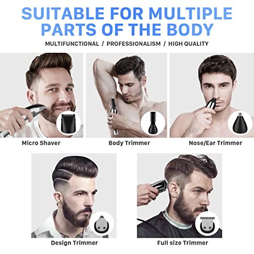 SUERW Tagliacapelli uomo Professionale, Regolabarba Maschio Impermeabile 5-in-1 con 4 Pettini Regolabili, Pale Ceramica-Titanio, Ricarica Rapida, Motore Potente, Tagliabarba, Macchinetta Capelli.